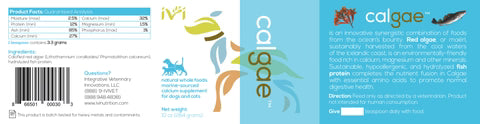 Calgae provides low-phosphorus sources of protein and calcium. This is a perfect solution for diets which are already high in protein (and don't need added phosphorus as a result) or which need restricted phosphorus due to kidney disease or other conditions.